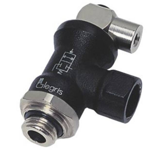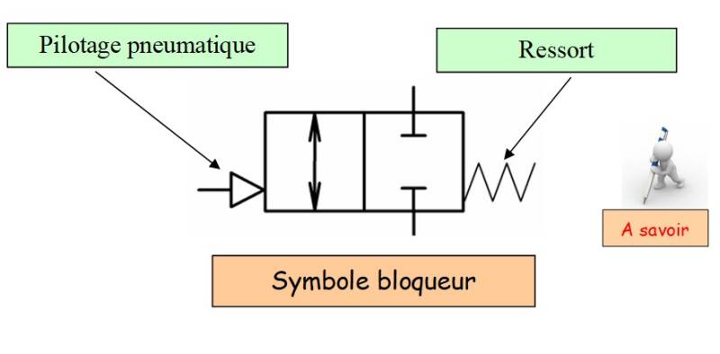 Le bloquer 2/2, aussi appelé « raccord stop vérin », permet la coupure de la circulation de l’ai comprimé. On place un bloqueur sur chaque orifice du vérin. En cas de chute de pression de pilotage, ils assurent l’arrêt du vérin en maintenant la charge entraînante.