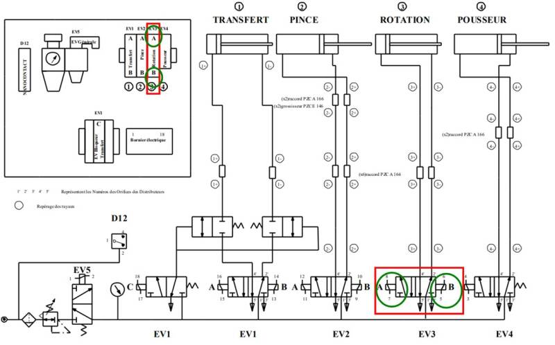 Le distributeur EV3 commande le vérin de rotation de la pince