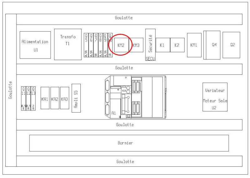 Pour que la bobine KM1 soit alimentée, il faut que la sortie Q2.2 soit actionnée